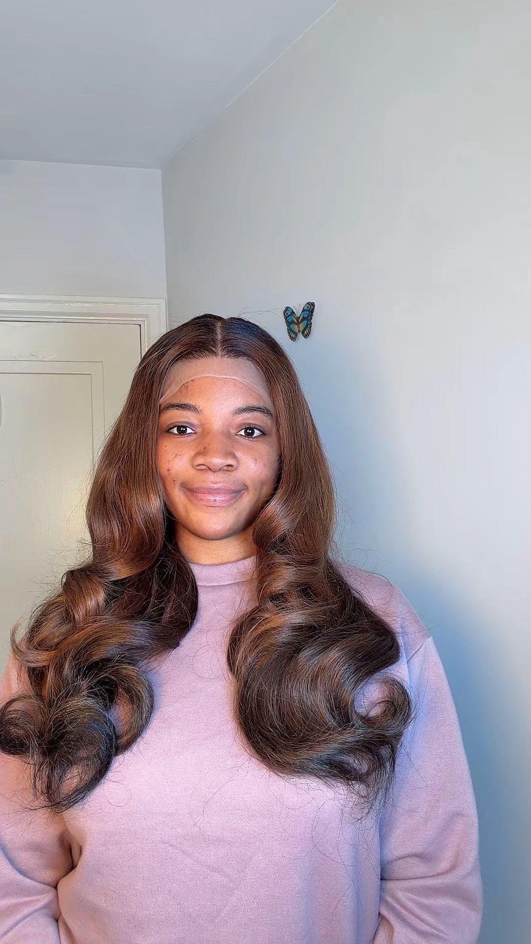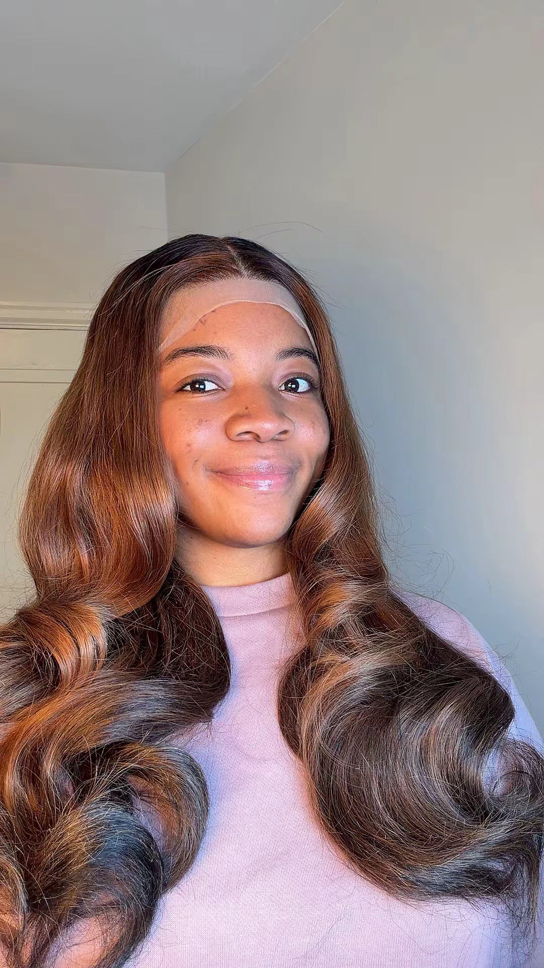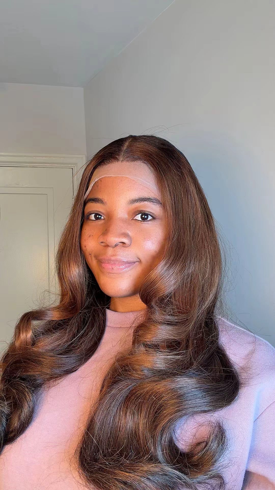 Medium brown mixed with ashy blonde with dark roots. The blend of colours makes it perfect for melanin skin and can be rocked every time.